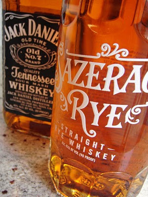 So here's what you need to know about rye whiskey: Rye whiskey (sometimes referred to simply as "rye") is kind of a big deal. It shows up in a lot of old cocktail recipes, and has recently been re-discovered by the cocktailing elite. (Apparently rye whiskey has a long and storied history - according to this guy, it was distilled by George Washington at Mount Vernon.) It tastes like whiskey but different, i.e., in rye, the spicy flavors present in the whiskey are sharper and more distinct. It practically begs to be paired with bitters, which is probably why the most famous cocktail made with Rye Whiskey, the sazerac, includes a healthy dose of Peychaud's. (Sazerac also happens to be the brand name of a kind of rye.)